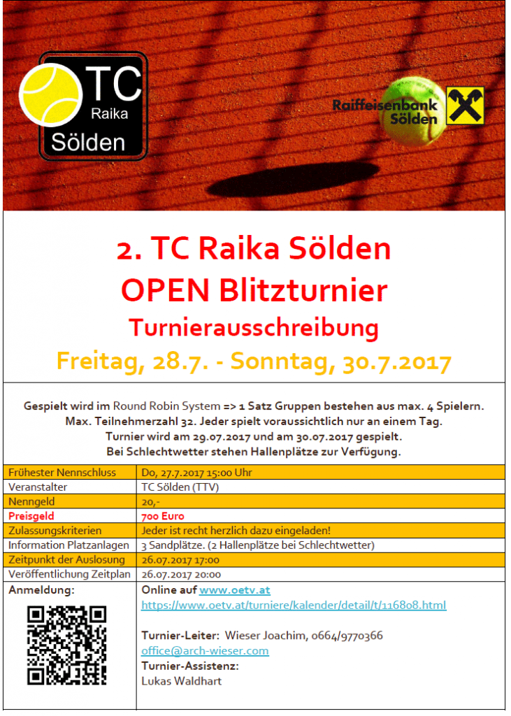 Clubmeisterschaft des TC Raika Sölden ab Sonntag , den 20.08.2017 – Sonntag den 03.09.2017 Turnierleitung…